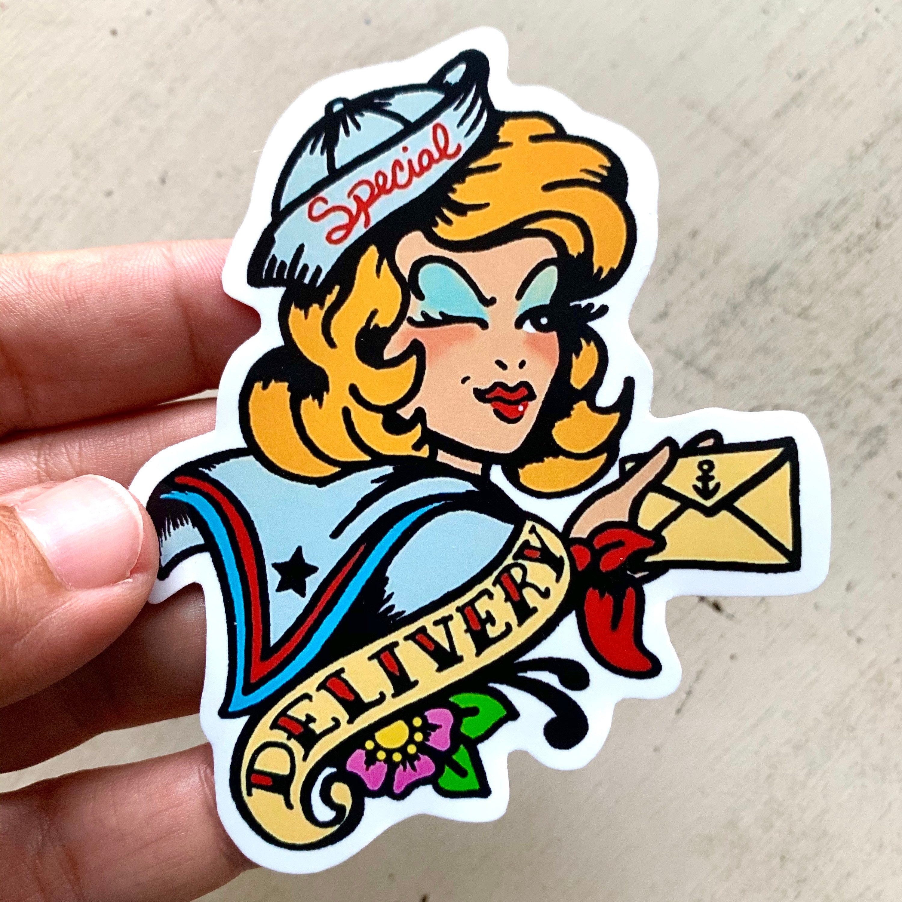 *5 sailor girl stickers, she features a mischievous wink and states "SPECIAL DELIVERY"