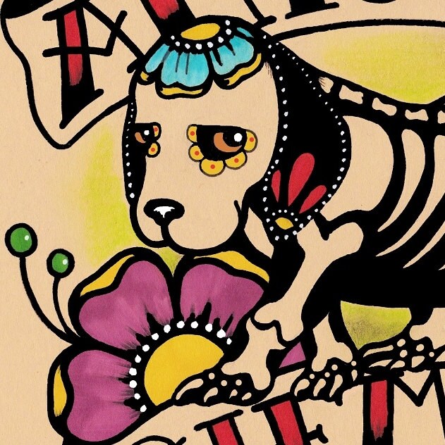 I created this sweet Day of the Dead Beagle hound puppy, specifically for a beloved dog's altar or for those that just love "Dia de los Muertos".