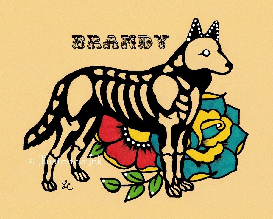I created this Day of the Dead German Shepherd print, specifically for a beloved dog's altar or for those that just love "Dia de los Muertos".