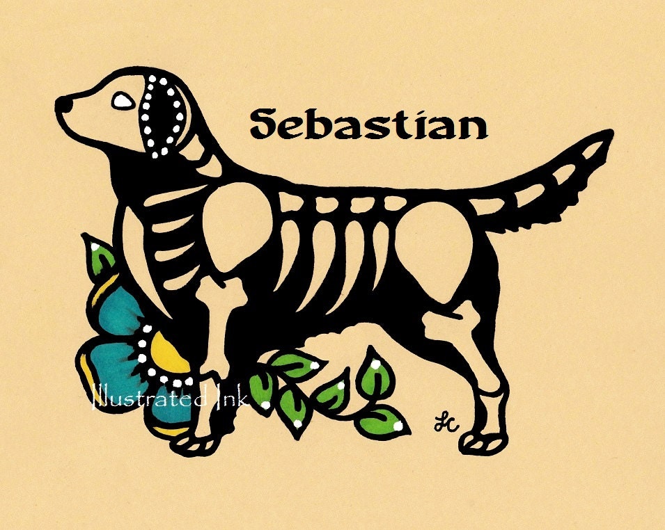 I created this Day of the Dead Golden Retriever print, specifically for a beloved dog's altar or for those that just love "Dia de los Muertos".