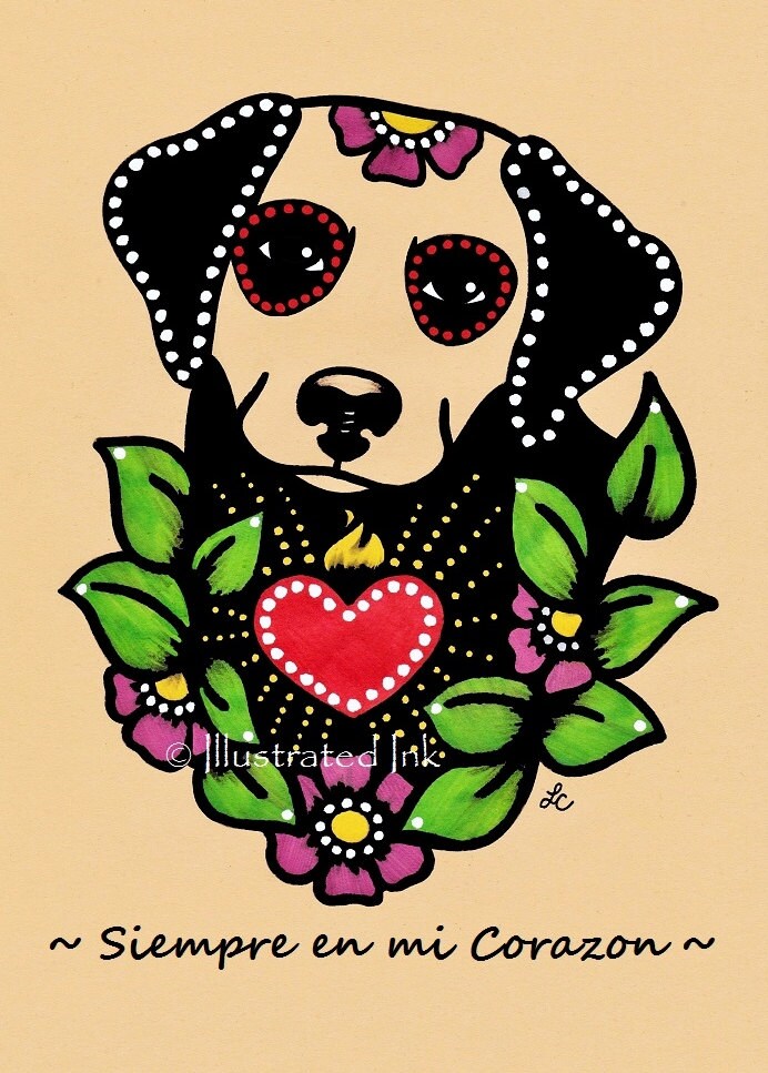 I created this sweet skele-lab print, specifically for a beloved dog's altar or for those that just love "Dia de los Muertos".