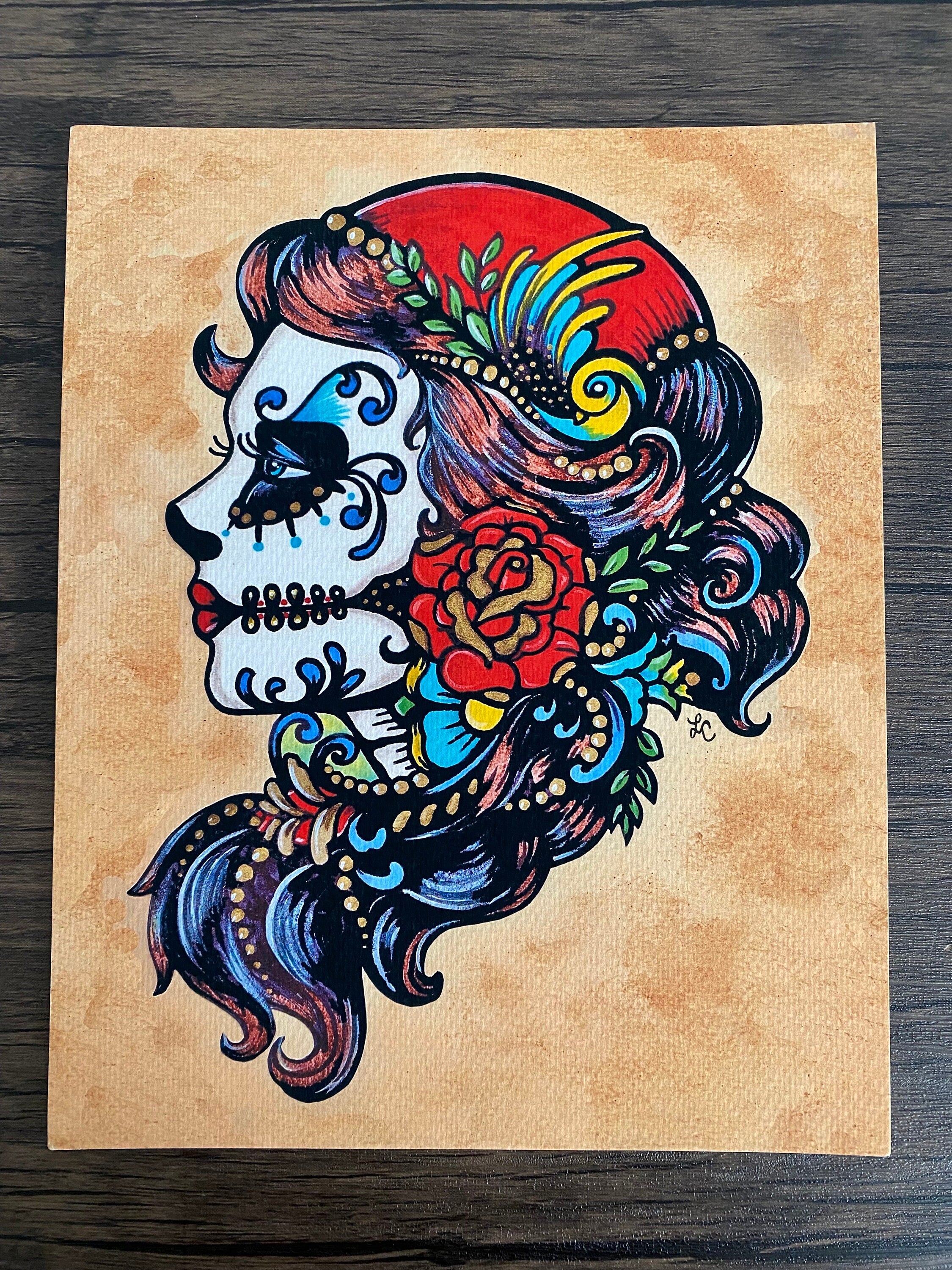 “Rose Red” features a Day of the Dead beauty, inspired by the German fairy tale, “Snow-White and Rose-Red”.