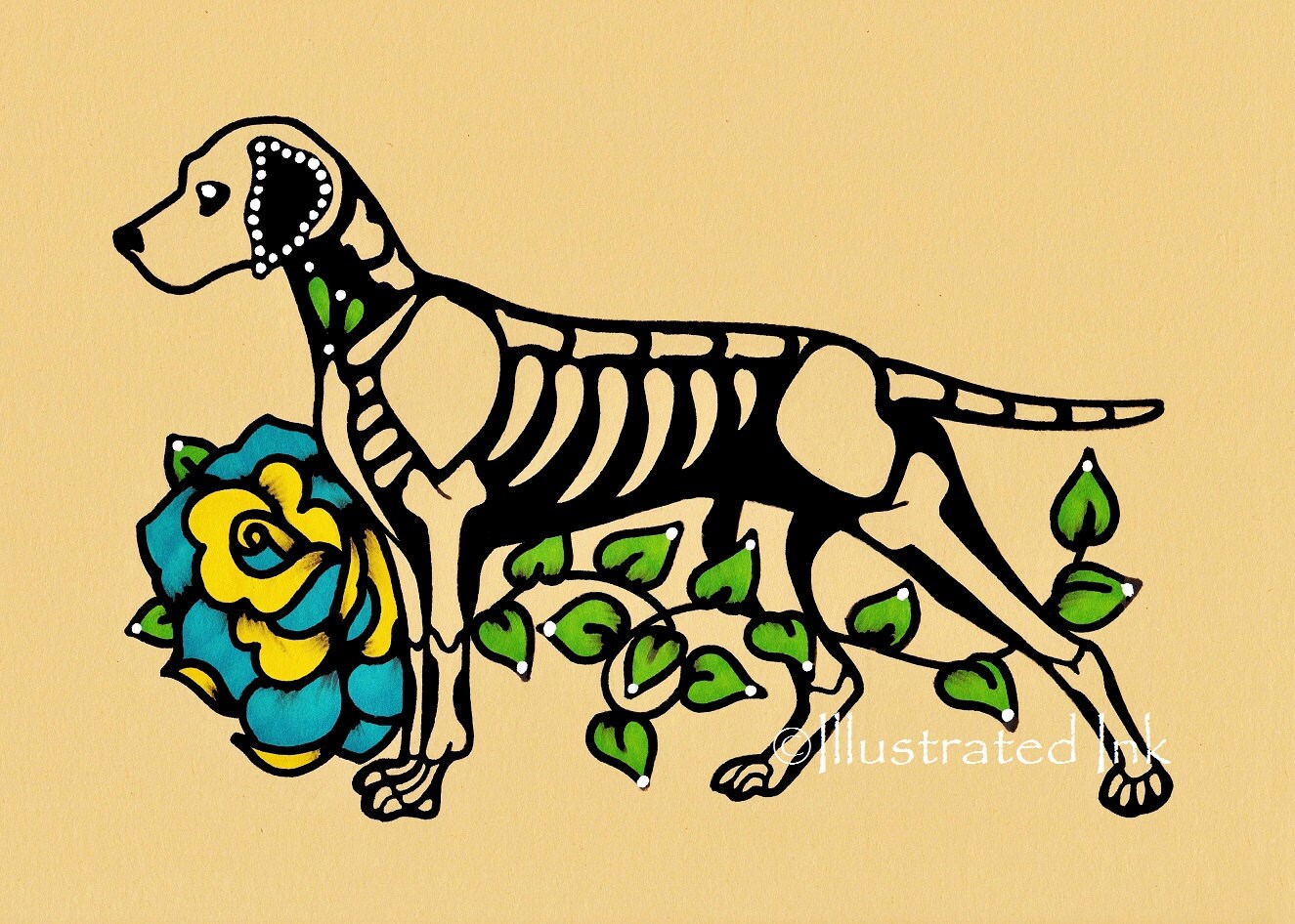 I created this sweet, Day of the Dead Weimaraner print, specifically for a beloved dog's altar or for those that just love "Dia de los Muertos".