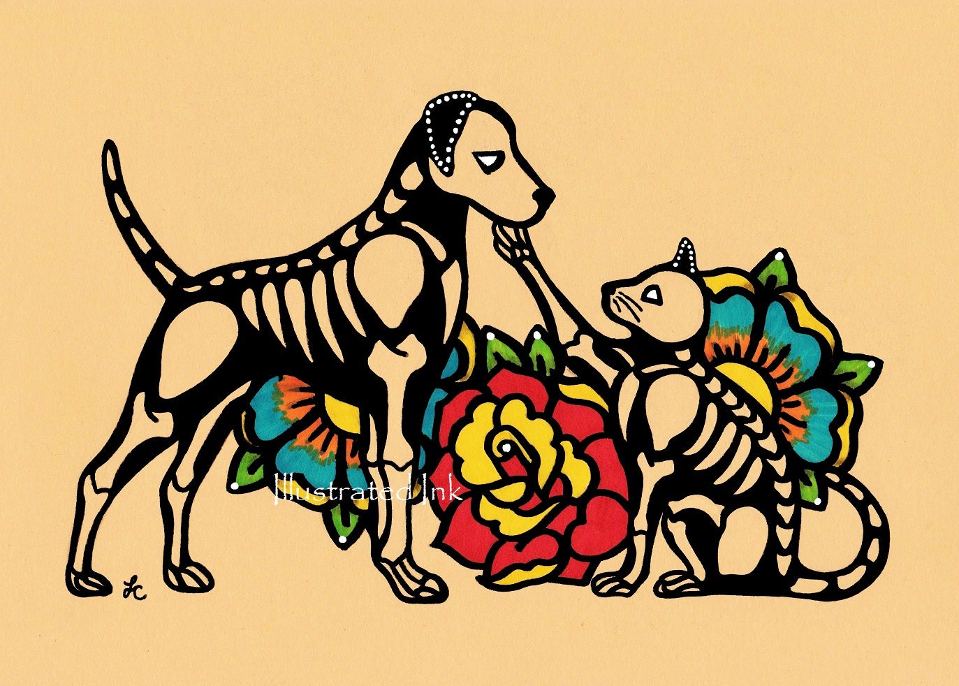 In a perfect world, dogs and cats would be the best of friends. This "Dia de los Muertos" dog and cat are forever friends, more than that, they are family. :)